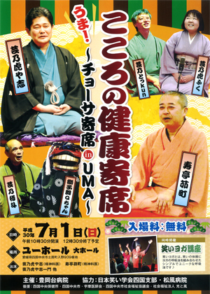 7月1日(日)午前10時30分から四国中央市土居町のユーホールで、今年も「うま!こころの健康寄席 ~チョーサ寄席 in UMA~」を開催いたします。