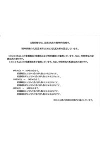 | 看護補助者 | 15名 | 臨床心理士 | 1名 | 精神保健福祉士 | 3名 |