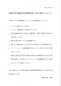 - 当院は、厚生労働大臣が定める看護を実施している保険医療機関です。